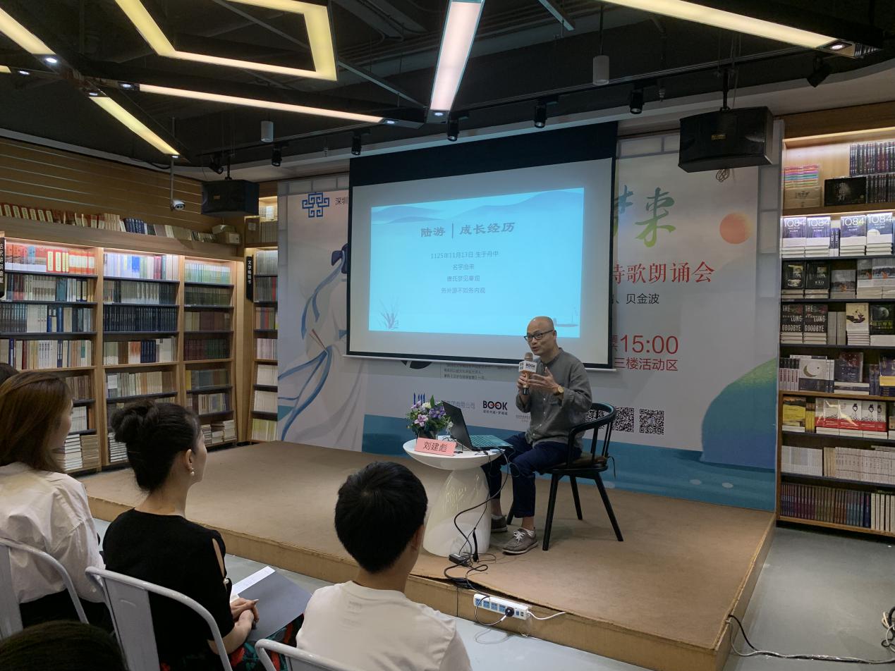 深圳新聞網訊 9月21日下午,由深圳市宣傳文化事業(yè)發(fā)展專項基金資助的“新時代中華優(yōu)秀傳統(tǒng)文化進社區(qū)”項目之“鐵馬冰河入夢來”陸游愛國詩詞公益講座暨陸游愛國詩詞朗誦會在羅湖書城三樓活動區(qū)成功舉辦。本次活動由深圳市壹書文化傳播有限責任公司、深圳書城羅湖城共同主辦,壹書閱讀推廣人、愛詩家創(chuàng)始人劉建彪先生擔任主講嘉賓?;顒由形撮_始,現場已座無虛席,觀眾們對講座充滿了期待,更有小朋友們朗誦起了陸游的名句。