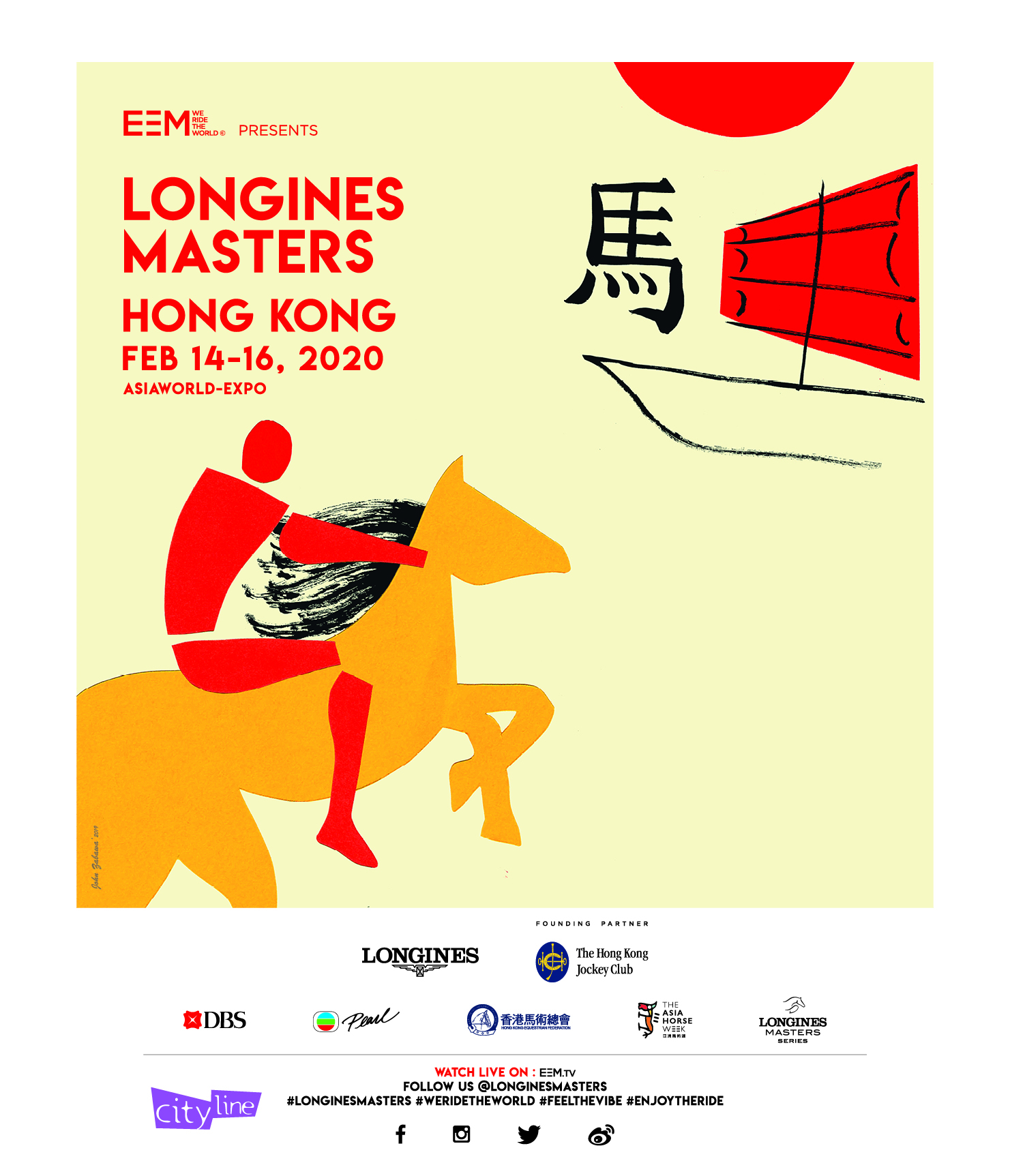 浪琴表馬術(shù)大師賽由EEM創(chuàng)立及主辦,在全球四大著名城市(紐約、巴黎、香港及洛桑)舉行,是全球最享負盛名的馬術(shù)賽事之一。受到網(wǎng)球界歷史悠久的“大滿貫”錦標啟發(fā),“馬術(shù)大師系列賽”的概念迅速擴展至海外,集最出色的馬術(shù)障礙賽、娛樂和時尚生活體驗于一體?!榜R術(shù)大師賽室內(nèi)大滿貫賽事”獲國際馬聯(lián)(FEI)認可,各項賽事傳播至全球逾130個國家,約3.2億戶觀眾能夠收看其精彩賽事。