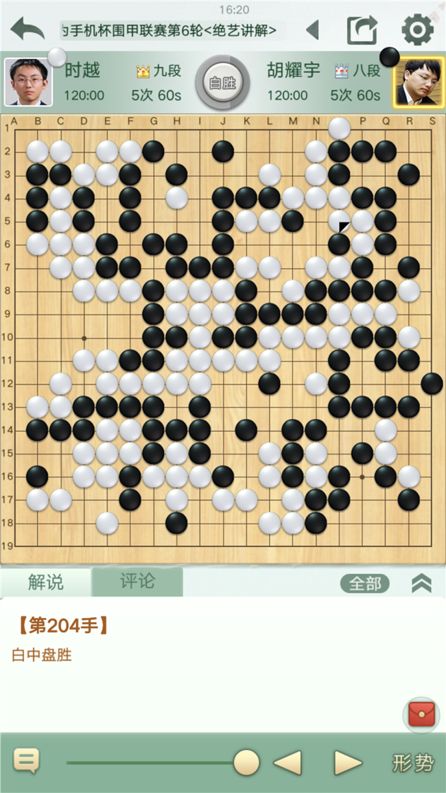 第四臺(tái),時(shí)越執(zhí)白對(duì)陣胡耀宇。在前幾盤(pán)不盡人意的情況下,壓力較大。