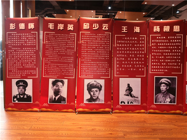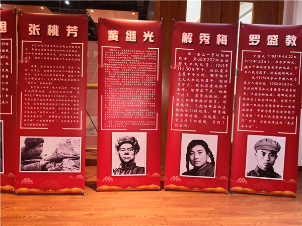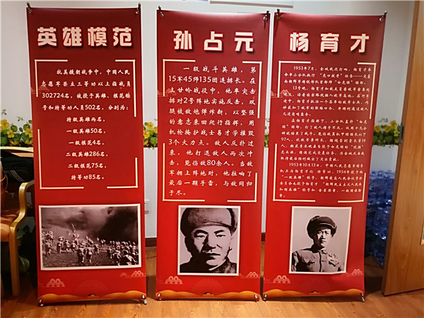 《抗美援朝十大英雄和著名戰(zhàn)役宣傳展》主要以展板形式陳列在活動(dòng)現(xiàn)場四周,以便于到場的人學(xué)習(xí)參觀。據(jù)悉,在抗美援朝戰(zhàn)爭中,中國人民志愿軍榮立三等功以上指戰(zhàn)員有302724名,被授予英雄、模范稱號(hào)和特等功人員502名,其中:特級(jí)英雄兩名,一級(jí)英雄50名,一級(jí)模范4名,二級(jí)英雄286名,二級(jí)模范75名,特等功85名。本次宣傳展收集了十位最有影響的英雄,他們是:彭德懷、楊根思、黃繼光、解秀梅、孫占元、邱少云、楊育才、張?zhí)曳?、王海、羅盛教。著名戰(zhàn)役有:上甘嶺戰(zhàn)役、馬良山爭奪戰(zhàn)、橫城反擊戰(zhàn)、云山之戰(zhàn)……參觀之后,許多人為英雄人物的言行所感動(dòng),表示要傳承發(fā)揚(yáng)抗美援朝不畏強(qiáng)權(quán)的英雄主義和革命精神。