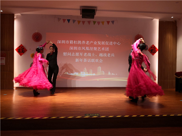 紀(jì)念活動(dòng)伊始,深圳市社會(huì)組織管理局副局長白凌在出差途中發(fā)來視頻祝賀。簕杜鵑養(yǎng)老產(chǎn)業(yè)促進(jìn)中心上級(jí)領(lǐng)導(dǎo)張道新也一直關(guān)注和支持活動(dòng)的進(jìn)展?;顒?dòng)現(xiàn)場,簕杜鵑養(yǎng)老產(chǎn)業(yè)促進(jìn)發(fā)展中心黨支部書記于軍發(fā)表了熱情的簡短的講話。他首先對(duì)前來參加和指導(dǎo)活動(dòng)的老首長、老前輩和各位嘉賓表示衷心的感謝。隨后,他簡短地介紹了簕杜鵑養(yǎng)老中心的發(fā)展情況。他說,該養(yǎng)老中心是按照習(xí)總書記“推動(dòng)養(yǎng)老事業(yè)多元化、多樣化發(fā)展”的指示下成立的,得到社會(huì)管理局的支持和指導(dǎo),將會(huì)在深港兩地開展養(yǎng)老信息咨詢、養(yǎng)老機(jī)構(gòu)服務(wù)等。目前,成立了簕杜鵑養(yǎng)老產(chǎn)業(yè)發(fā)展中心黨支部、簕杜鵑養(yǎng)老產(chǎn)業(yè)藝術(shù)團(tuán),并將爭做黨建、文化建設(shè)的“雙排頭兵”作為該社團(tuán)的目標(biāo)之一。今年,已開展獻(xiàn)愛心走訪慰問,重陽節(jié)為羅湖區(qū)鶴年居家養(yǎng)老中心的老人送去4臺(tái)多功能輪椅、100支手杖、14400個(gè)口罩等實(shí)用物品;協(xié)調(diào)部分社康中心、醫(yī)院和相關(guān)基金會(huì)共同舉辦大型的老年人義診活動(dòng);同時(shí)與市內(nèi)多家大健康企業(yè)進(jìn)行溝通,建立長期聯(lián)合互助渠道,籌建示范養(yǎng)老基地,探索深圳特色的養(yǎng)老模式,打造養(yǎng)服務(wù)品牌,造福深港兩地老人群體。