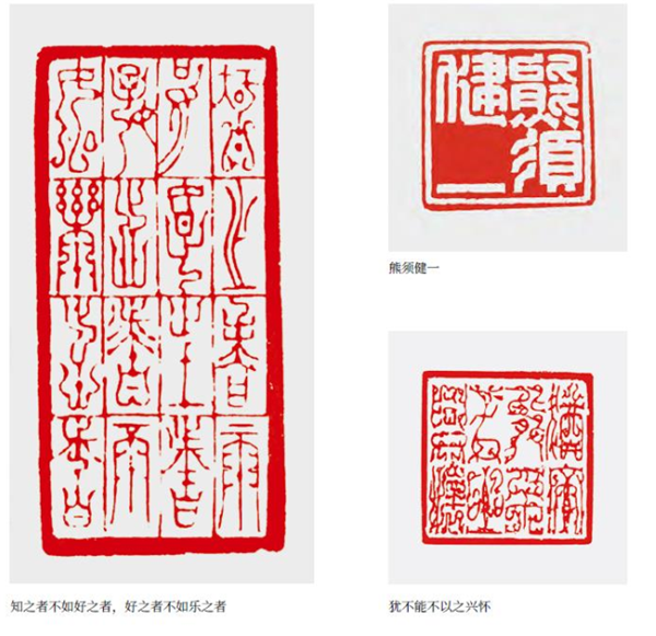說起自己的代表作,寧老師十分謙虛,但筆者還從他的印屏、印作中,從以往宣傳報道中理出了一些頭緒。比如,剛來深圳,有感于鄧小平同志的功績,刻了一方《總設(shè)計師鄧小平》,陳巨來的印味明顯。2013年寶安區(qū)書法協(xié)會發(fā)行新年掛歷上印有“蛇年大吉”印章,便出自他手。那是一方金文白文印,整體舒朗開闊,靈動高古,爛漫天成,不失為其代表作。還有,用一方印完整地刻出了268字的《心經(jīng)》亦是獨一無二的。他為友所刻《真善美》朱文鳥蟲篆,布局疏密自然,光潔妍美,婀娜多姿,韻味無窮。元朱文白文印《熊須健一》,疏密呼應(yīng),“一”字處大片留紅,與另三字形成強烈對比,“須”字三撇作美化處理,形成印眼。此印工穩(wěn)爽朗,行刀如筆,耐人尋味。還有應(yīng)約為著名棋手武宮正樹、徐瑩等所刻鳥蟲篆印均“嵌入”圍棋黑白二子的元素,自然貼切,又妙趣橫生。還有為出版社、書局、書籍插圖以及賽事配刻的印章更是數(shù)不勝數(shù)。當(dāng)前,寧老師依然精神飽滿、創(chuàng)作旺盛,相信未來還會不斷有令人驚喜的印品佳作問世。
