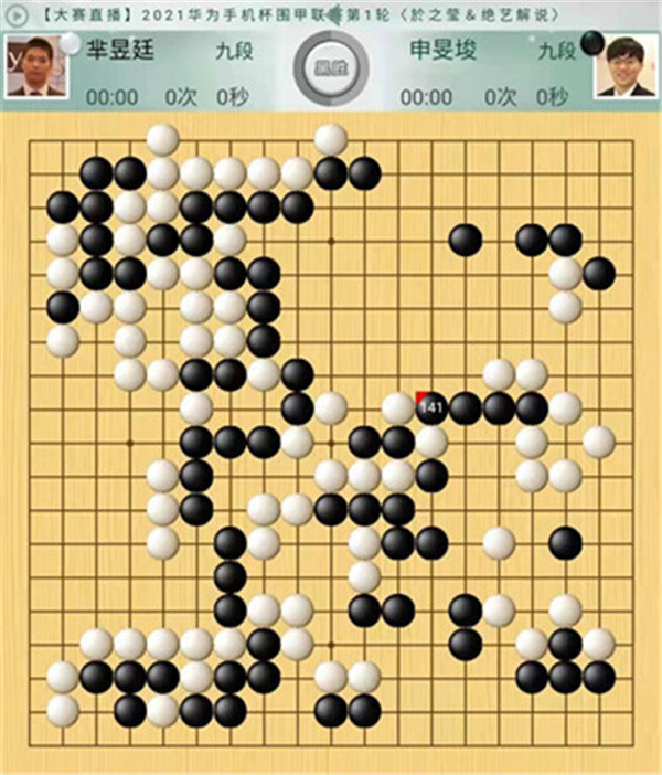 今日比賽中,申旻俊主將執(zhí)黑對陣新二冠羋昱廷,開局左上角申旻俊配合小米使出羋氏飛刀,結(jié)果是飛刀不成功黑棋局面領(lǐng)先。中盤黑棋攻擊中央白棋時,白棋脫先搶占實地。被黑手起刀落斬殺大龍,局終??炱迮_,去年屢立戰(zhàn)功的戎毅七段執(zhí)白對陣黃云嵩七段,行棋穩(wěn)健,占居三個角之后,又在中間活出一大塊,行棋至194手勝。三臺陶欣然八段對陣陳賢八段,行棋222手白中盤勝。四臺時越九段對趙晨宇一戰(zhàn),行至284手,以四分之三子微弱優(yōu)勢取勝。