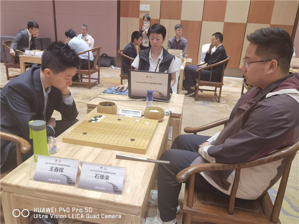 石豫來執(zhí)白對陣小將王春暉。雙方錯進(jìn)錯出,最終黑棋小官子出現(xiàn)問題,白棋幸運(yùn)1/4子獲勝。
