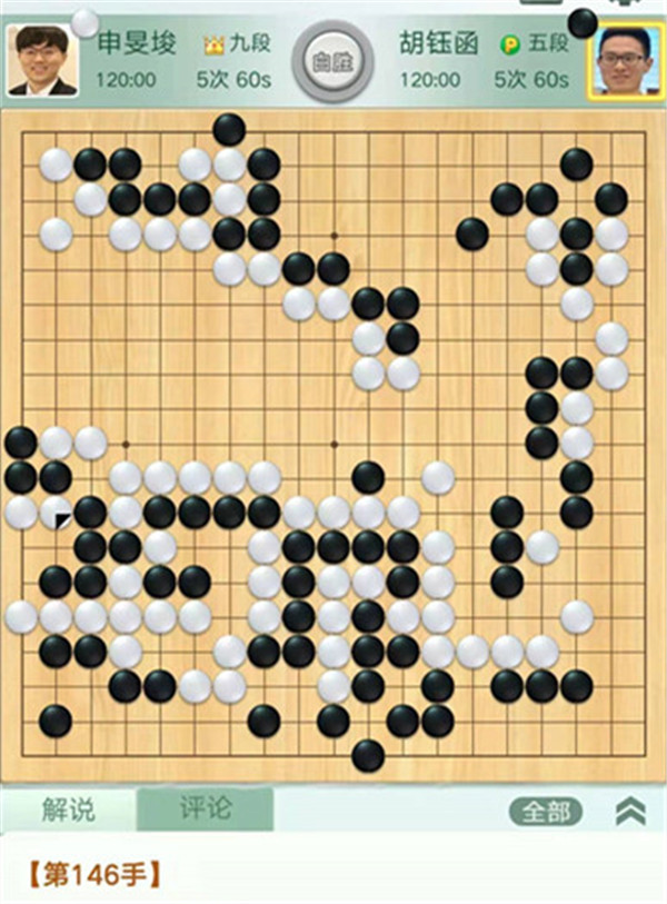 申旻俊主將執(zhí)白對陣胡鈺函。白棋發(fā)揮堪稱完美,優(yōu)勢不斷擴(kuò)大,最終黑棋不顧自身薄弱在左下攪局,白棋應(yīng)對正確黑棋崩潰。