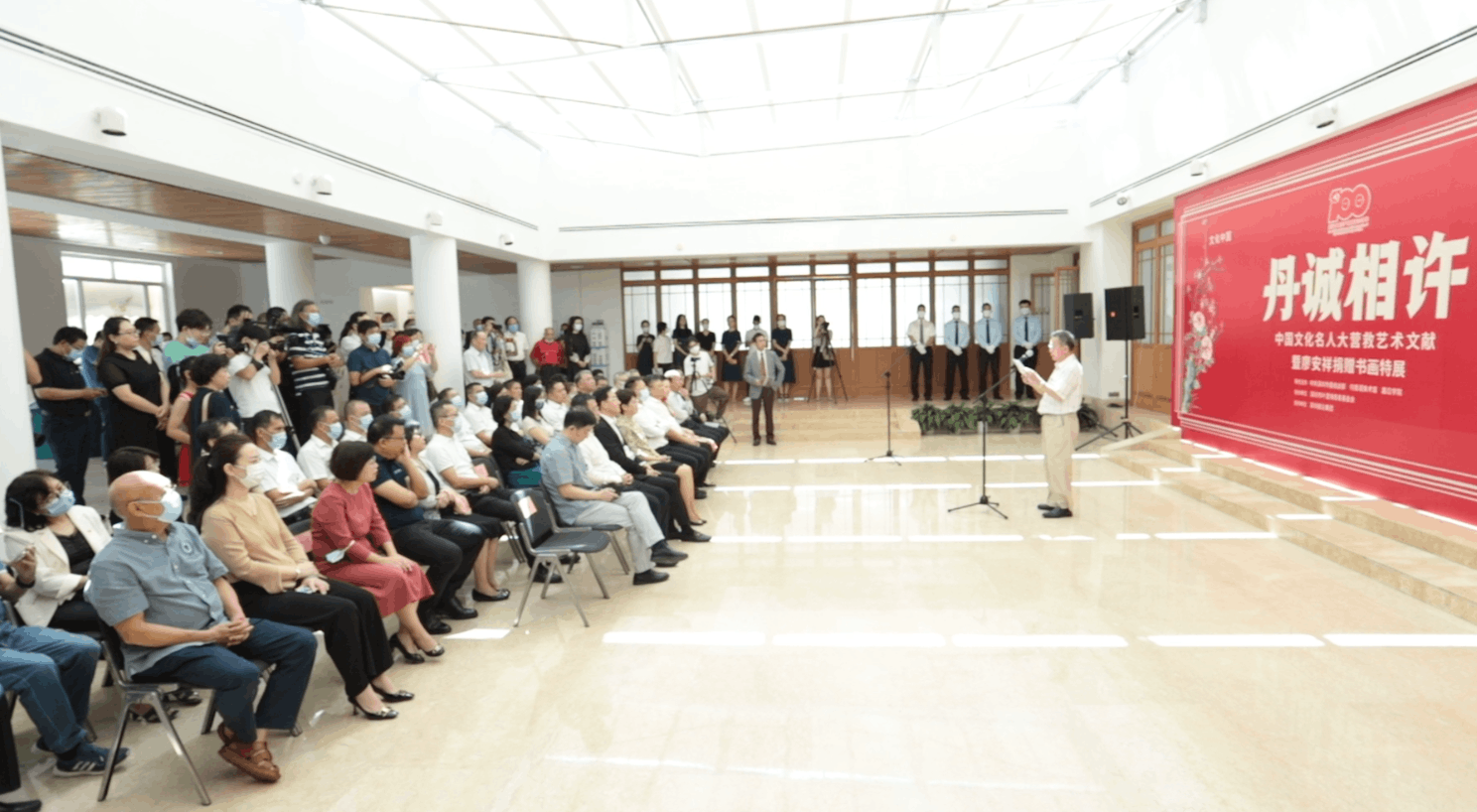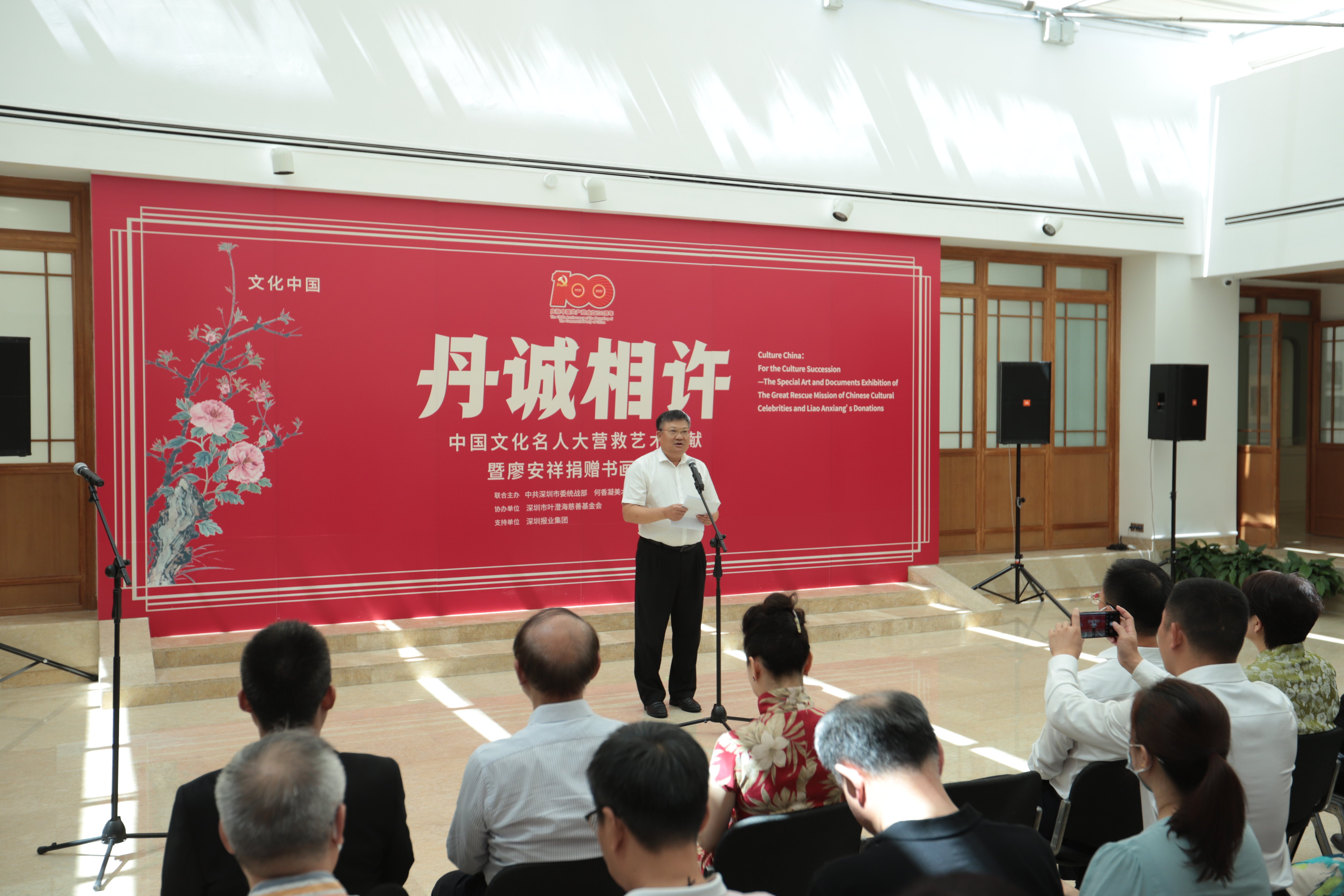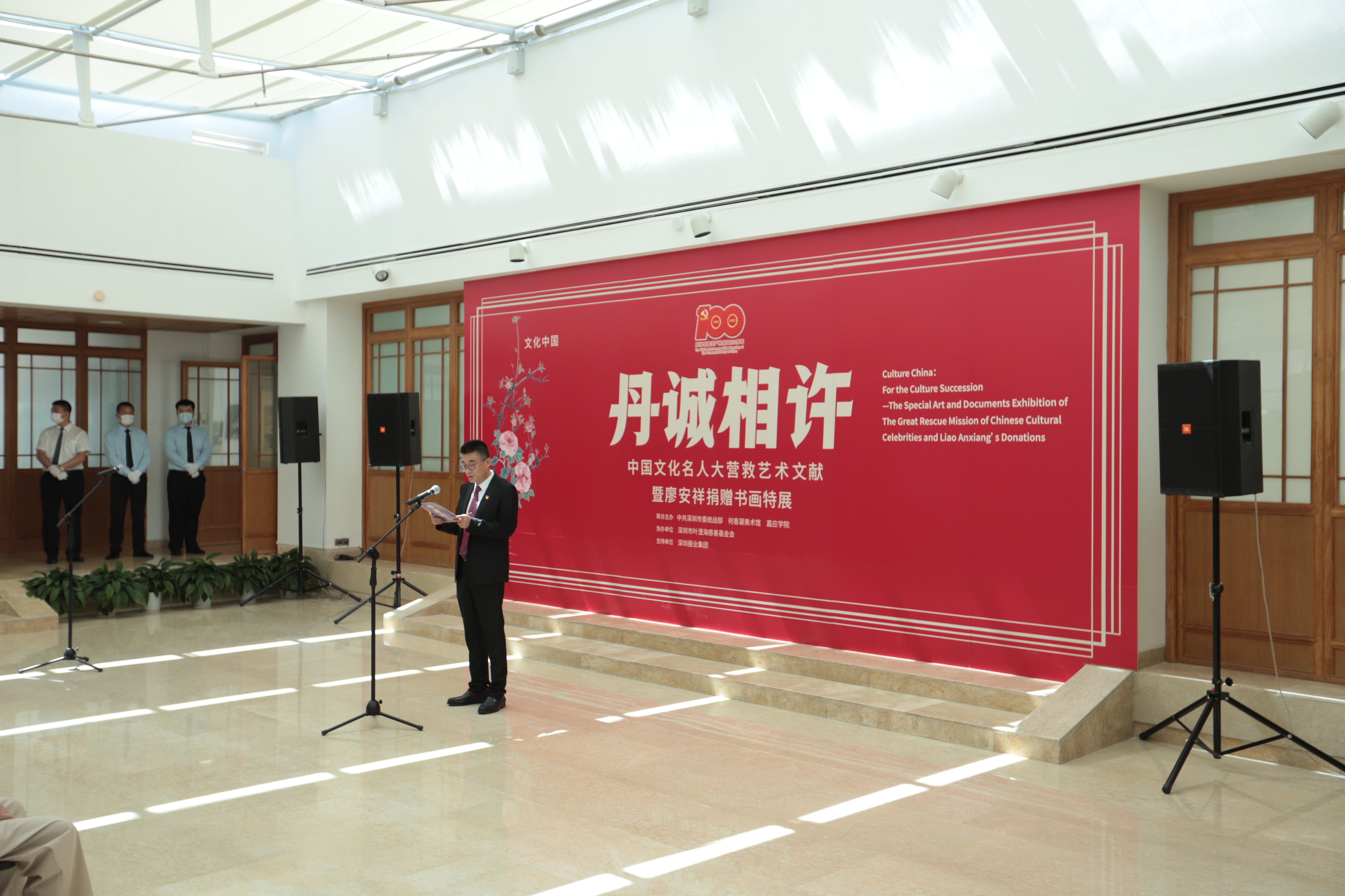 蔡顯良館長向出席開幕活動(dòng)的嘉賓表示感謝,他介紹,粵港“秘密大營救”被譽(yù)為“抗戰(zhàn)以來最偉大的搶救工作”,它延續(xù)了中國文化的血脈,更彰顯了黨的力量、突顯了黨對(duì)文化事業(yè)的重視以及對(duì)文化人士的愛護(hù),對(duì)推動(dòng)全民族抗戰(zhàn)以及新中國的文化建設(shè)起到了重要作用。在中國共產(chǎn)黨百年華誕之際,為緬懷先輩的光輝事跡,傳承和弘揚(yáng)統(tǒng)戰(zhàn)精神,美術(shù)館與深圳市委統(tǒng)戰(zhàn)部、嘉應(yīng)學(xué)院聯(lián)合推出此次展覽,為觀眾帶來一場愛國、愛黨的文化之旅。
