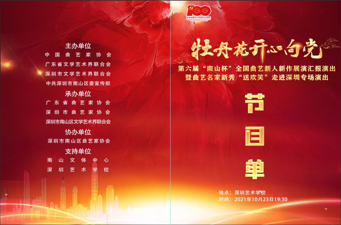 讀特客戶端·深圳新聞網(wǎng)2021年10月24日訊(記者 張俊達)23日,深圳曲藝界迎來大日子。“牡丹花開心向黨”——第六屆“南山杯”全國曲藝新人新作展演匯報演出暨曲藝名家新秀“送歡笑”走進深圳專場演出在深圳南山藝術(shù)學(xué)校舉行。