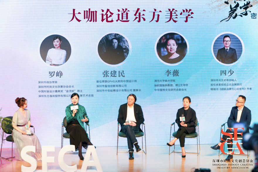 在大咖論道環(huán)節(jié),羅崢、張建民、李薇以及近年來暢銷書《超級品牌與心動信號》作者四少共同圍繞東方美學(xué)里藏著中國人的哪些精神與美學(xué)密碼,如何讓美學(xué)與普通人的生活產(chǎn)生關(guān)聯(lián),東方美學(xué)如何才能引領(lǐng)世界新時尚等話題展開討論。