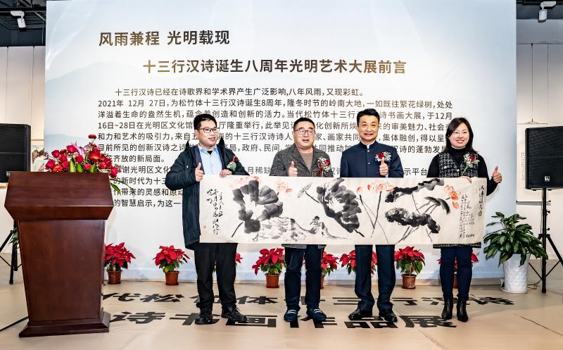 讀特客戶端·深圳新聞網2021年12月29日訊(記者 田志強)近日,國家社科基金項目“當代漢詩創(chuàng)新詩體研究”階段性成果展——十三行漢詩書畫作品展,于光明區(qū)文化館成功舉辦。本次展覽集中展示本項目重要研究成果、全國各地新漢詩詩人的原創(chuàng)十三行漢詩之書畫作品等。十三行漢詩創(chuàng)立八年以來,得到了海內外詩人的廣泛關注,在國家社科基金研究團隊精研闡釋的基礎上,得到了學術界的肯定。