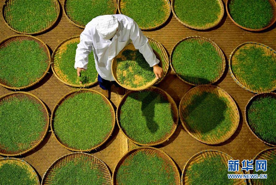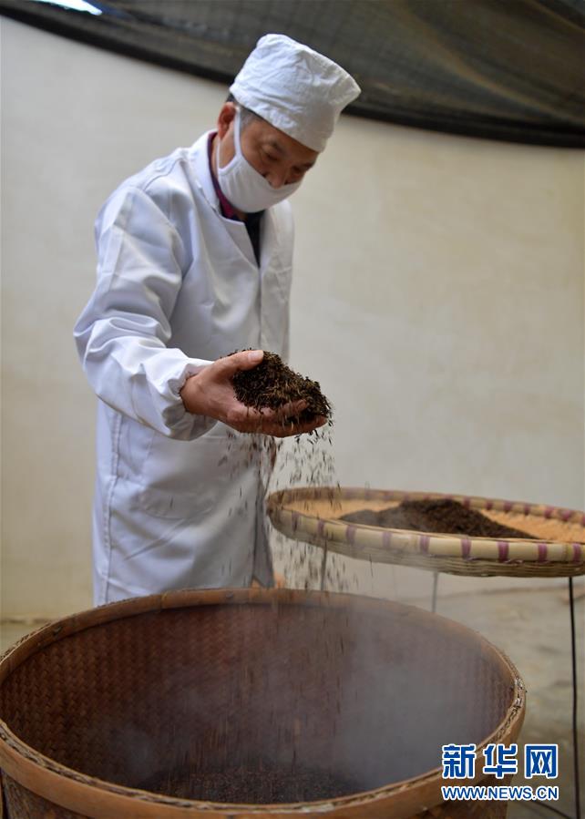 產(chǎn)于湖北省恩施土家族苗族自治州利川市毛壩鎮(zhèn)楠木村的“冷后渾”鮮葉,是制作利川紅茶最為優(yōu)質(zhì)的原料。工人先采下“冷后渾”茶樹鮮葉,后經(jīng)萎凋、揉捻、發(fā)酵、烘烤、篩選、整形、品級(jí)等工藝,歷時(shí)十多個(gè)小時(shí),最終制成的紅茶沖泡后湯色紅艷明亮、滋味醇厚甘爽。在茶湯冷卻后,湯色逐漸變渾,加熱后又恢復(fù)紅艷明亮,這也是“冷后渾”得名的由來(lái)。新華社發(fā)楊順丕攝