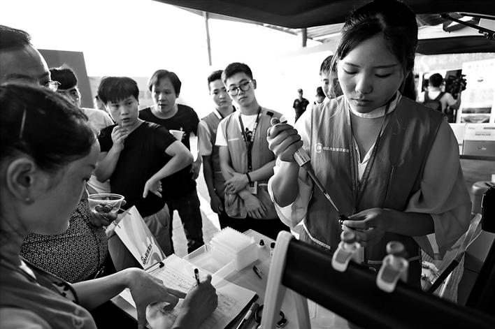 7月17日,深圳食品安全宣傳周啟動(dòng)儀式現(xiàn)場(chǎng)開(kāi)展食品快檢。