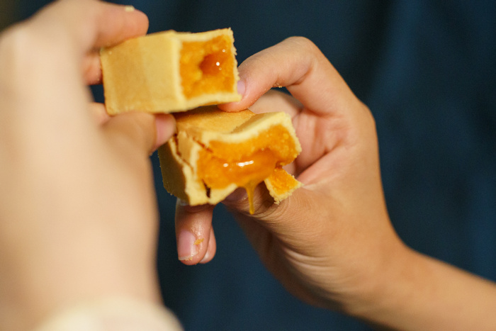月餅有流心餡,鳳梨酥吃過流心的嗎?徐福記·呈味空間的咸蛋黃流心酥,跟傳統(tǒng)月餅有不同的酥軟的酥皮,吃起來口感綿密而不膩,是因為酥皮里加入了奶香醇厚的安佳黃油,烘焙界頂尖認(rèn)證的黃油,聞起來還有淡淡的奶香。內(nèi)餡是有香濃細(xì)滑的奶黃,里層藏著有流沙般的咸蛋黃,輕輕一咬,入口松化,餡料如熔巖般流出,飽滿的流心一下子就迸發(fā)喉嚨,軟諾的口感讓人欲罷不能,吃完還想吃。俗話說流心更用心,富到流油好意頭,今年來點不一樣的“暴富“!