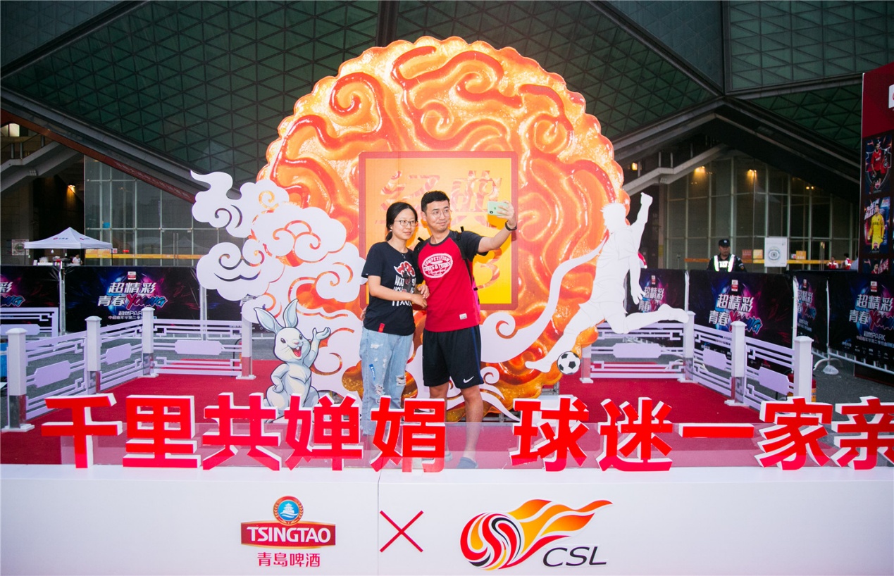 在賽場外,中超贊助商青島啤酒加碼快樂元素,在當(dāng)中秋之夜攜手一同為球迷呈獻(xiàn)豐盛的歡聚盛宴,巨型月餅裝置、cosplay嫦娥玉兔、定制啤酒月餅、球迷霸王餐等互動體驗,為中超比賽注入無限激情與活力。