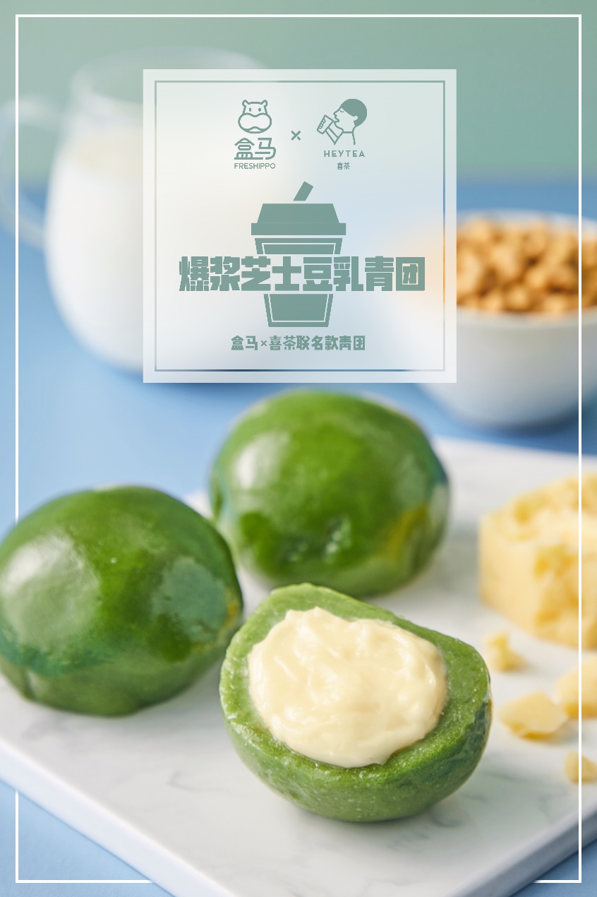 此次推出的青團共有兩款:爆漿芝士豆乳青團、阿華田波波青團?!鞍涯滩栾L(fēng)味做到青團里,確實是頭一次?!焙旭R負責(zé)人茜倩表示,這次的合作雙方一拍即合;將盒馬青團與喜茶最熱門的豆乳口味、最受歡迎的波波相結(jié)合,也是希望能在傳統(tǒng)美食中增添新意,帶給消費者不同的味覺體驗。