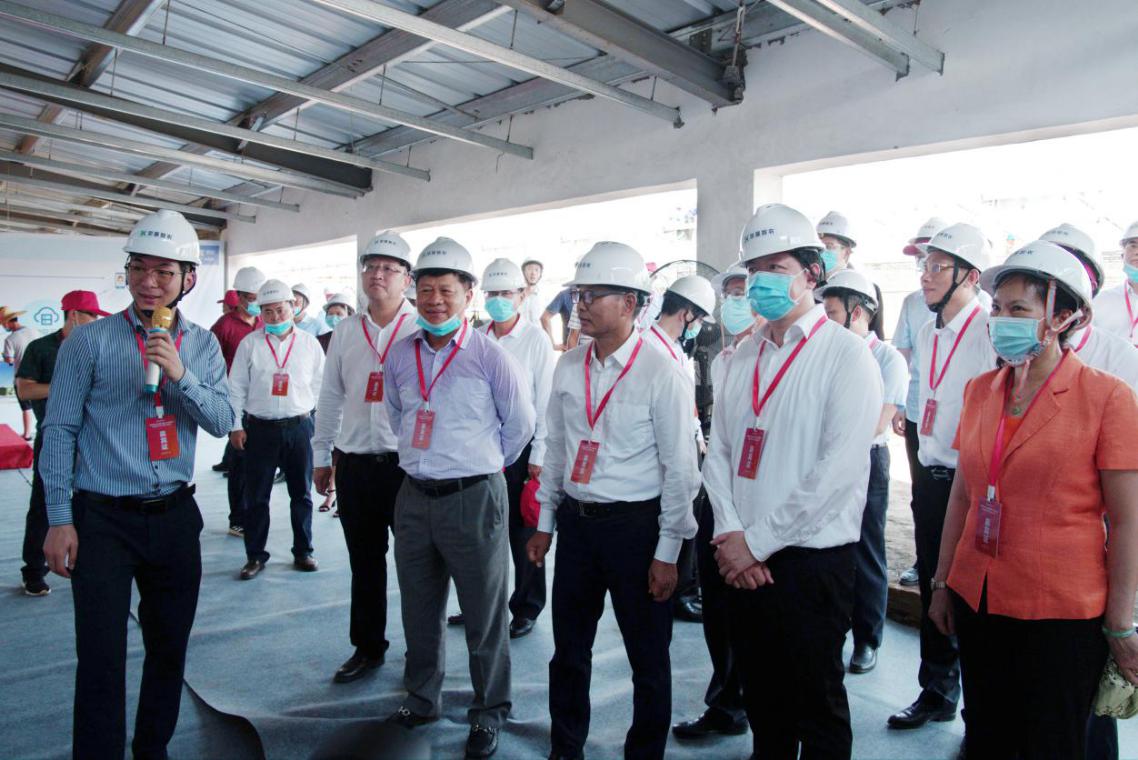儀式結(jié)束后,領(lǐng)導(dǎo)嘉賓參觀項(xiàng)目一期西區(qū)產(chǎn)仔舍