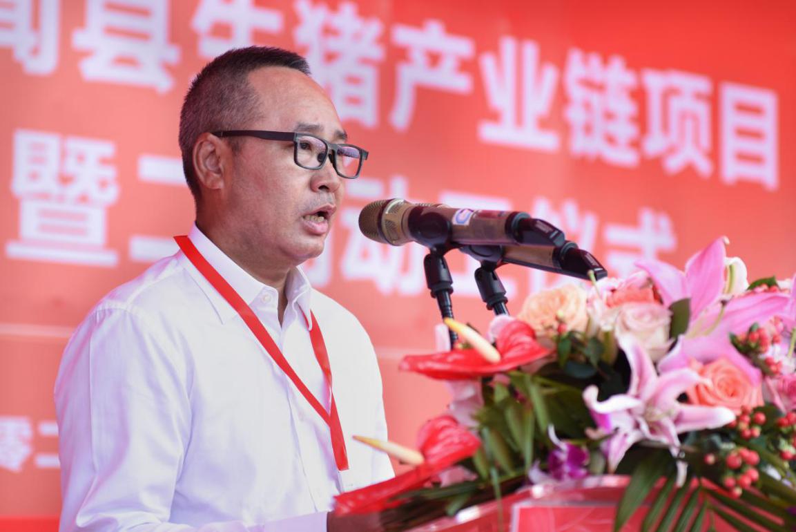 現(xiàn)場還舉行了二期項(xiàng)目動工儀式。據(jù)介紹,二期項(xiàng)目位于前山鎮(zhèn)黃桐樹嶺,由生活區(qū)、生產(chǎn)區(qū)、有機(jī)物資源中心組成,主要建設(shè)內(nèi)容包括:2條閉群自繁自育一體化樓層飼養(yǎng)模式生產(chǎn)線,合計(jì)年出欄商品豬36萬頭,預(yù)計(jì)2021年5月投產(chǎn),2022年6月出欄商品豬。