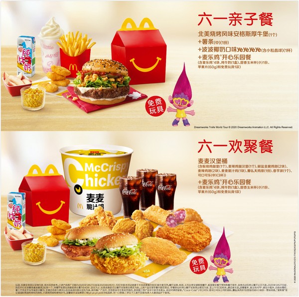 六一期間麥當勞推出六一親子餐和六一歡聚餐,為大小朋友提供更多選擇。