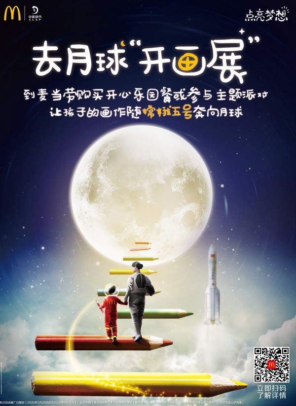 麥當勞中國與“中國探月”合作,讓兒童夢想畫作隨“嫦娥五號”奔向月球。