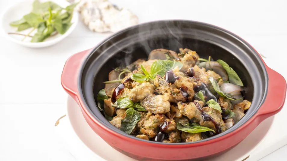 九層塔香燜海蠣:九層塔獨特的香料風(fēng)味,經(jīng)過細火干燜,完全滲入到每粒海蠣肉里,趁熱吃,特別香!