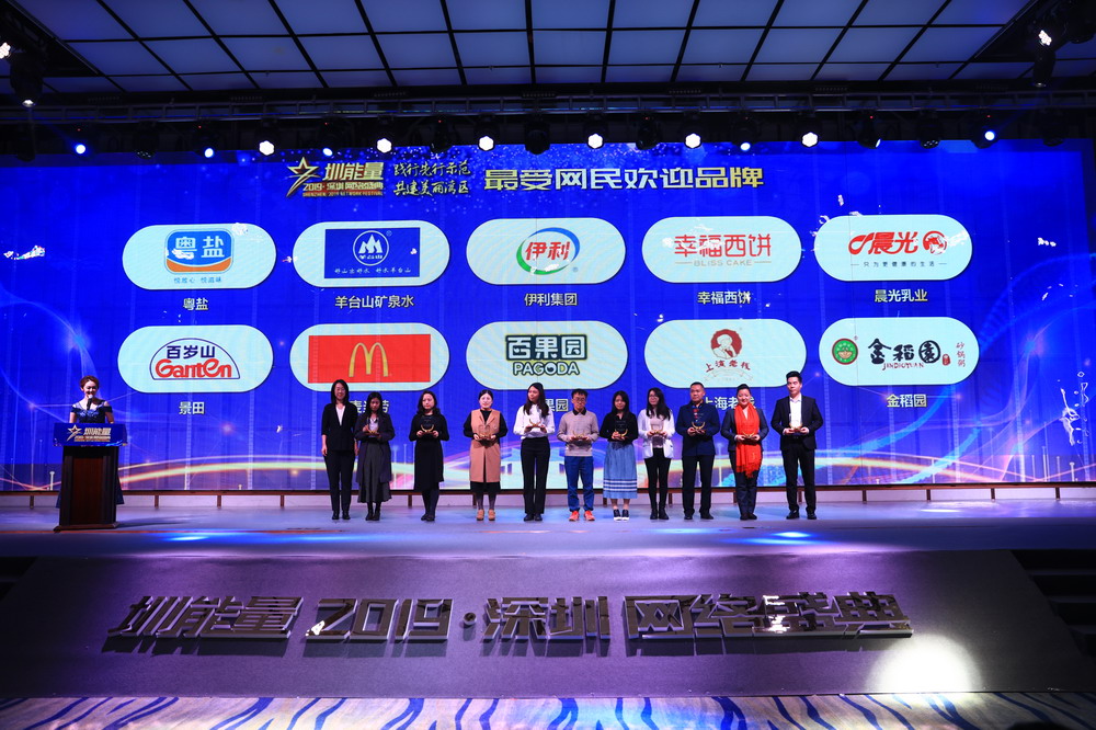 ‘圳能量’2019深圳網(wǎng)絡(luò)盛典現(xiàn)場公布了“食品行業(yè)最受網(wǎng)民歡迎品牌”獲獎名單。