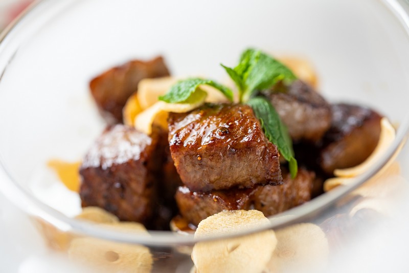 “金蒜一口?!迸H馇谐尚》綁K,一口就能吃下,櫻桃小嘴也不怕失去儀態(tài)。