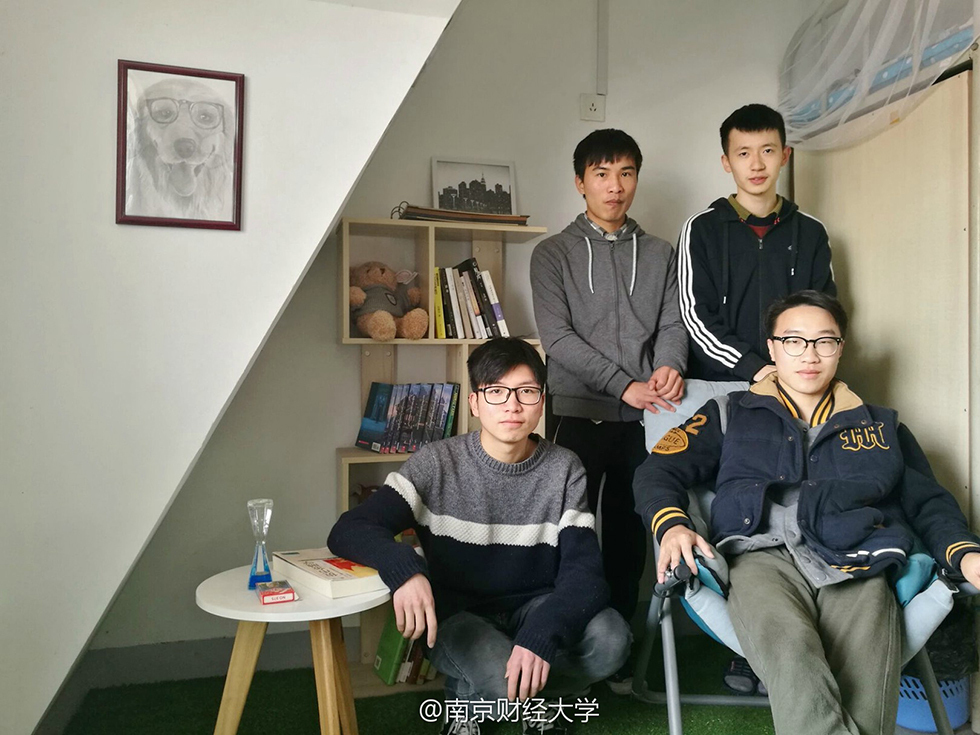 “這四個(gè)孩子風(fēng)格迥異,學(xué)習(xí)成績(jī)也都很好,比如劉以康,績(jī)點(diǎn)4.0,是個(gè)超級(jí)學(xué)霸;廉鎮(zhèn)宇平時(shí)愛攝影,很活躍……”南京財(cái)經(jīng)大學(xué)外國(guó)語(yǔ)學(xué)院黨委副書記李慕原笑著介紹,早有耳聞他們宿舍很文藝,今天見到果然名不虛傳,“男生宿舍搞得這么美,我自己都覺得很有意思,不少女孩子看了圖片也驚嘆說要來好好借鑒?!?/p>