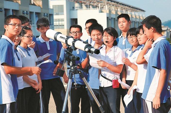 2000年前后,深圳出現(xiàn)天文熱,學(xué)校的天文社團(tuán)十分活躍,一些學(xué)?;舜髢r(jià)錢(qián)購(gòu)買(mǎi)天文望遠(yuǎn)鏡、修建天文臺(tái)。那段時(shí)間,深圳還有學(xué)生因?yàn)樘煳母?jìng)賽被北京大學(xué)錄取。據(jù)了解,深圳實(shí)驗(yàn)學(xué)校首位校長(zhǎng)金式如曾在經(jīng)費(fèi)十分困難的情況下,掏出一筆錢(qián),購(gòu)買(mǎi)了一臺(tái)日本產(chǎn)的110牛頓望遠(yuǎn)鏡,隨后學(xué)校與中國(guó)科學(xué)院南京天文儀器研究制造中心聯(lián)合建造天文臺(tái)。