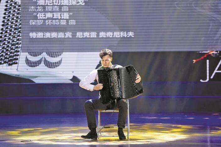 ▲俄羅斯青年手風琴演奏家尼科雷·奧奇尼科夫現(xiàn)場演奏。