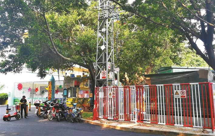 ▲讓家長(zhǎng)擔(dān)憂的高壓電柜距離幼兒園門口不到5米。深圳晚報(bào)見習(xí)記者 高靈靈 攝