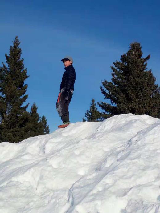 在學(xué)校,一望無(wú)際的操場(chǎng)上,雪丘一個(gè)比一個(gè)高,當(dāng)你站在雪丘的至高點(diǎn),笨重的校巴就不再是那么大了。喜歡雪的同學(xué)們一點(diǎn)也不怕冷。他們?cè)谘┑乩锎蚯?、摔跤、滑雪,還不時(shí)地會(huì)聽(tīng)到尖叫聲,原來(lái)是同學(xué)相互在雪丘上推上推下,開(kāi)心得不亦樂(lè)乎。