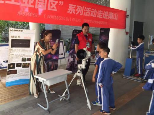 此外,深圳優(yōu)之陽科技有限公司的“一對一遠程”在線教學項目給同學們配備“貼身名師”,隨時給同學們排憂解惑,深受同學歡迎;深圳諾必達節(jié)能環(huán)保有限公司的智能機器人能嗨聊、講故事、陪伴學習、搜索,還能作為溝通父母的橋梁,搖身變成同學們的良師益友,吸引大批同學前來互動體驗;中廣和(深圳)科技有限公司給同學們開展實用技能公益培訓,給同學們帶來一頓豐富的技能盛宴;深圳市鵬城光學望遠鏡有限公司則帶同學們揭秘太空......