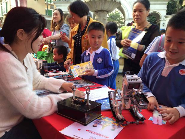 市民們在體驗(yàn)EV3編程機(jī)器人與電磁感應(yīng)千人震項(xiàng)目