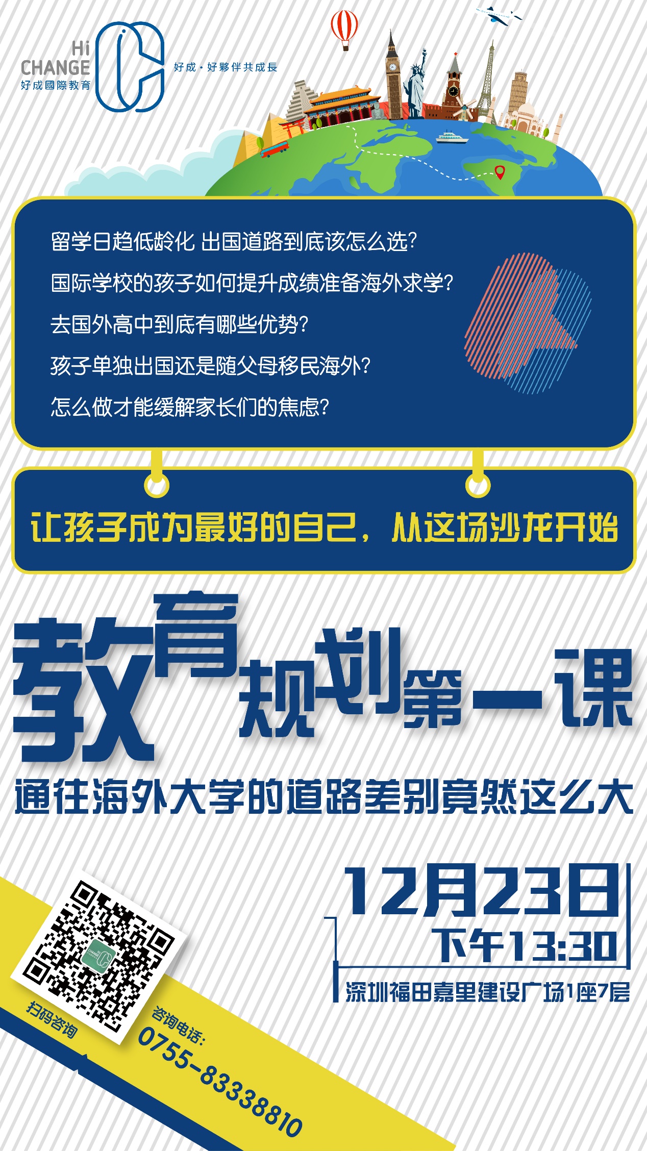 如何才能得到資深教育行業(yè)專家的指導(dǎo)?為孩子規(guī)劃一條平坦的出國之路,成了不少家長的一件“心事”。現(xiàn)在,就有這樣一個(gè)機(jī)會,讓家長們能與資深教育行業(yè)專家面對面接觸,為孩子從小規(guī)劃一條直通世界名校的暢通之路。