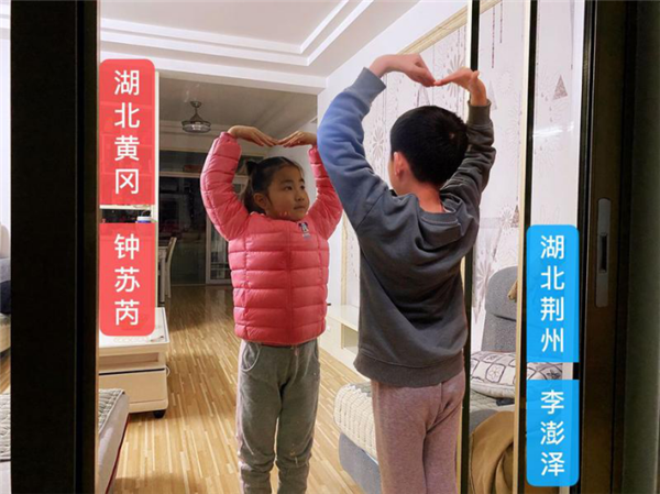 為了達(dá)到更好的效果,姚靜和社團(tuán)外聘何老師通過“騰訊課堂”帶領(lǐng)孩子們云訓(xùn)練,在視頻中一句一句地指導(dǎo);制作團(tuán)隊(duì)中,魏浩民媽媽白天要陪伴孩子上網(wǎng)課,要負(fù)責(zé)煮一日三餐,晚上把二胎寶寶哄睡后開始制作,高樂逸媽媽白天要上班,她只好利用晚上,爭分奪秒地完成視頻拼接;鐘蘇芮媽媽、李澎澤媽媽則在群里出謀劃策,每天盯著屏幕10多個(gè)小時(shí)。盡管大家是第一次探索用手機(jī)軟件、電腦制作視頻,但經(jīng)過一遍遍調(diào)整,最終還是拍攝收集了200多個(gè)視頻,100多張照片。