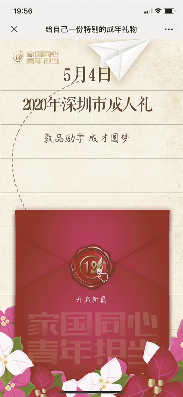 “今年的成人禮轉(zhuǎn)到了線上舉行,雖然沒(méi)有現(xiàn)場(chǎng)的熱鬧,但這種方式更便捷,參與面更廣,更多的同學(xué)可以通過(guò)在線參加,感受到深圳這座城市為他們送出的祝福。”李娜燕說(shuō)。