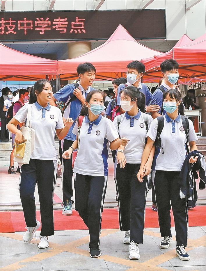 昨日下午,福田區(qū)科技中學(xué)考點,考生們走出考場。