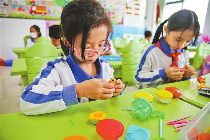 羅湖教科院附屬學(xué)校二年級(jí)同學(xué)正在上黏土課。 本版圖片除署名外均由深圳晚報(bào)記者 陳玉 劉夏藍(lán) 攝