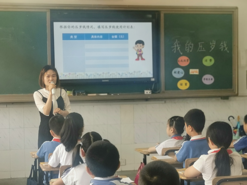 四年級數學與財商課程壓歲錢系列呈現(xiàn)的是《笑笑的壓歲錢》。黃珊老師讓同學們分享壓歲錢,引出與壓歲錢相關的知識,接著運用已學的數學知識幫助笑笑同學記錄壓歲錢的收支明細,自主探究如何制定三年存錢計劃。課堂上孩子們分享奇思妙想,對數學與財商有了更深入的了解。