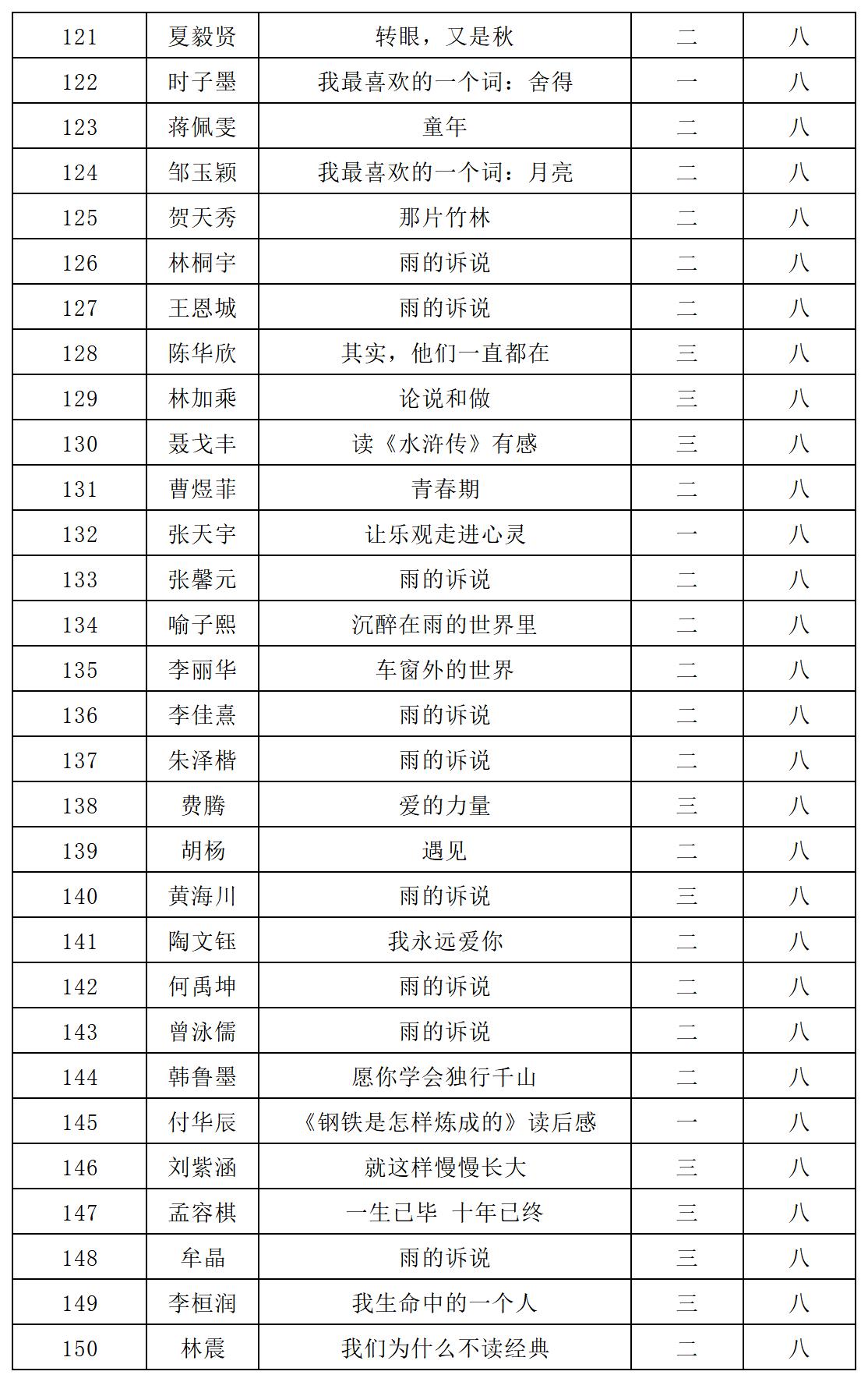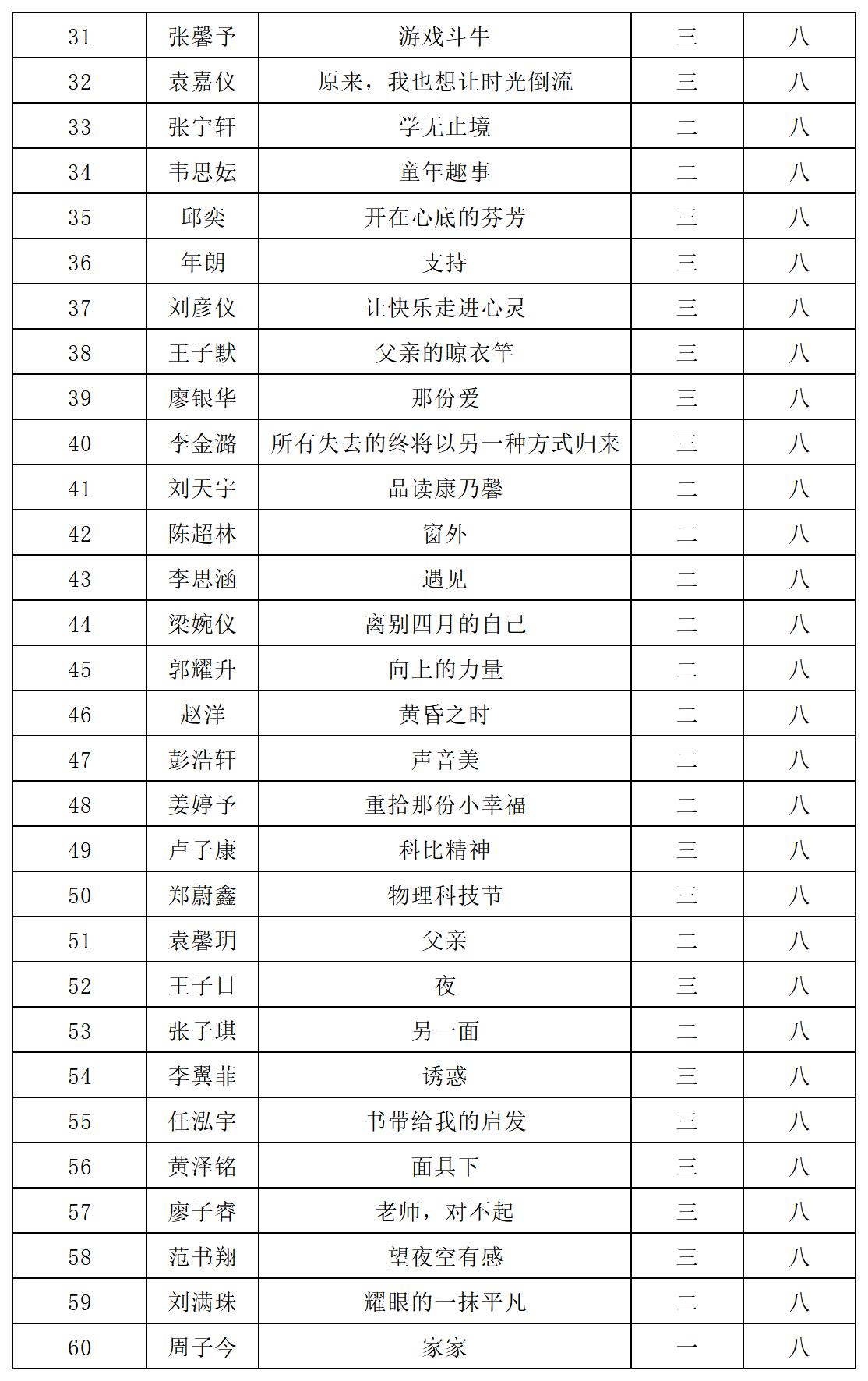 自2021年1月,活動征稿啟動以來,獲得了深圳市廣大中小學(xué)生、教師、文學(xué)愛好者的熱烈響應(yīng)積極參與,吸引了深圳百余所學(xué)校的上萬人關(guān)注報名。現(xiàn)公布北師大南山附屬學(xué)校中學(xué)部晉級復(fù)賽名單如下: