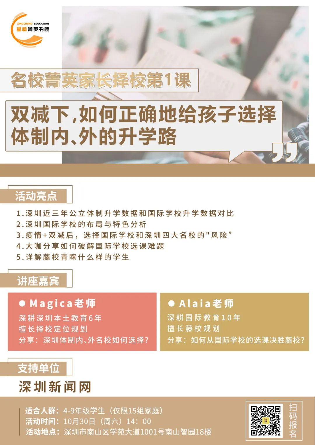 如果家長(zhǎng)們?cè)趽裥7矫嬗幸蓡?,歡迎參加擇校君第一期【名校菁英家長(zhǎng)下午茶】!一起探討:雙減之后,如何正確地給孩子選擇體制內(nèi)、外的升學(xué)路?