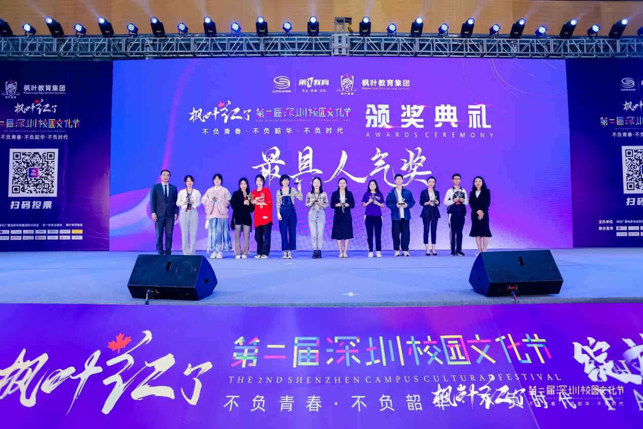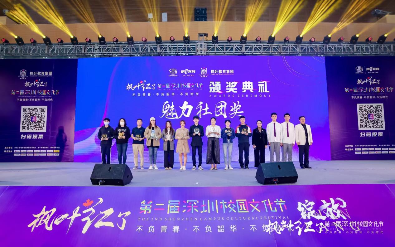 另?yè)?jù)了解,本屆活動(dòng)不以競(jìng)賽為目的,不設(shè)專業(yè)評(píng)委,不設(shè)專業(yè)分?jǐn)?shù),不設(shè)獎(jiǎng)牌等級(jí),而是以鼓勵(lì)學(xué)生全面發(fā)展、校園文化交流為初心,由觀眾們自發(fā)投票評(píng)選出魅力社團(tuán)獎(jiǎng)、優(yōu)秀指導(dǎo)老師獎(jiǎng)、鯤鵬獎(jiǎng)、綻放獎(jiǎng)、最具人氣獎(jiǎng)。記者從現(xiàn)場(chǎng)了解到,獲得本屆魅力社團(tuán)獎(jiǎng)的學(xué)校有10所,分別是:深圳市南山區(qū)文理實(shí)驗(yàn)學(xué)校(集團(tuán))《模擬聯(lián)合國(guó)社》、南山區(qū)前海學(xué)?!栋羟蜿?duì)》、深圳實(shí)驗(yàn)學(xué)校高中部《回聲合唱團(tuán)》、深圳高級(jí)中學(xué)(集團(tuán))中心校區(qū)《深高學(xué)生戲劇團(tuán)》、深圳市楓葉學(xué)?!队⒄Z(yǔ)戲劇社》、深圳市龍華中學(xué)《跆拳道空手》、深圳市蛇口育才教育(集團(tuán))育才中學(xué) 《404樂(lè)隊(duì)》、深圳市育新學(xué)校 《The best軍樂(lè)團(tuán)》、南方科技大學(xué)附屬中學(xué)《機(jī)器人隊(duì)》、深圳市藝術(shù)高中《鐘呂交響管樂(lè)團(tuán)》;獲得本屆校園文化節(jié)鯤鵬獎(jiǎng)(唯一)的學(xué)校是:南方科技大學(xué)附屬中學(xué);獲得本屆校園文化節(jié)綻放獎(jiǎng)的是9所學(xué)校,分別是:深圳市第一職業(yè)技術(shù)學(xué)校、深圳中學(xué)、深圳市藝術(shù)高中、深圳市寶安中學(xué)(集團(tuán))、深圳市第三職業(yè)技術(shù)學(xué)校、深圳市楓葉學(xué)校、深圳市龍崗區(qū)龍城高級(jí)中學(xué)、寶安區(qū)為明雙語(yǔ)實(shí)驗(yàn)學(xué)校、深圳市蛇口育才教育(集團(tuán))育才中學(xué);獲得現(xiàn)場(chǎng)最具人氣獎(jiǎng)的學(xué)校有10所,分別是:深圳市第一職業(yè)技術(shù)學(xué)校、深圳市福田區(qū)華強(qiáng)職業(yè)技術(shù)學(xué)校、深圳市第三職業(yè)技術(shù)學(xué)校、深圳大學(xué)附屬中學(xué)、紅嶺中學(xué)(集團(tuán))石廈初中部、龍崗區(qū)蘭著學(xué)校、萬(wàn)科梅沙書院、深圳市南山區(qū)文理實(shí)驗(yàn)學(xué)校(集團(tuán))、筍崗中學(xué)、寶安中學(xué)(集團(tuán));最后同時(shí)獲得本屆校園文化節(jié)優(yōu)秀指導(dǎo)老師獎(jiǎng)的學(xué)校分別來(lái)自:南方科技大學(xué)附屬中學(xué)、深圳市第一職業(yè)技術(shù)學(xué)校、深圳中學(xué)、深圳市蛇口育才教育(集團(tuán))育才中學(xué)、深圳市寶安中學(xué)(集團(tuán))、深圳市第三職業(yè)技術(shù)學(xué)校、深圳市藝術(shù)高中、深圳市楓葉學(xué)校、寶安區(qū)為明雙語(yǔ)實(shí)驗(yàn)學(xué)校、深圳市龍崗區(qū)龍城高級(jí)中學(xué)。