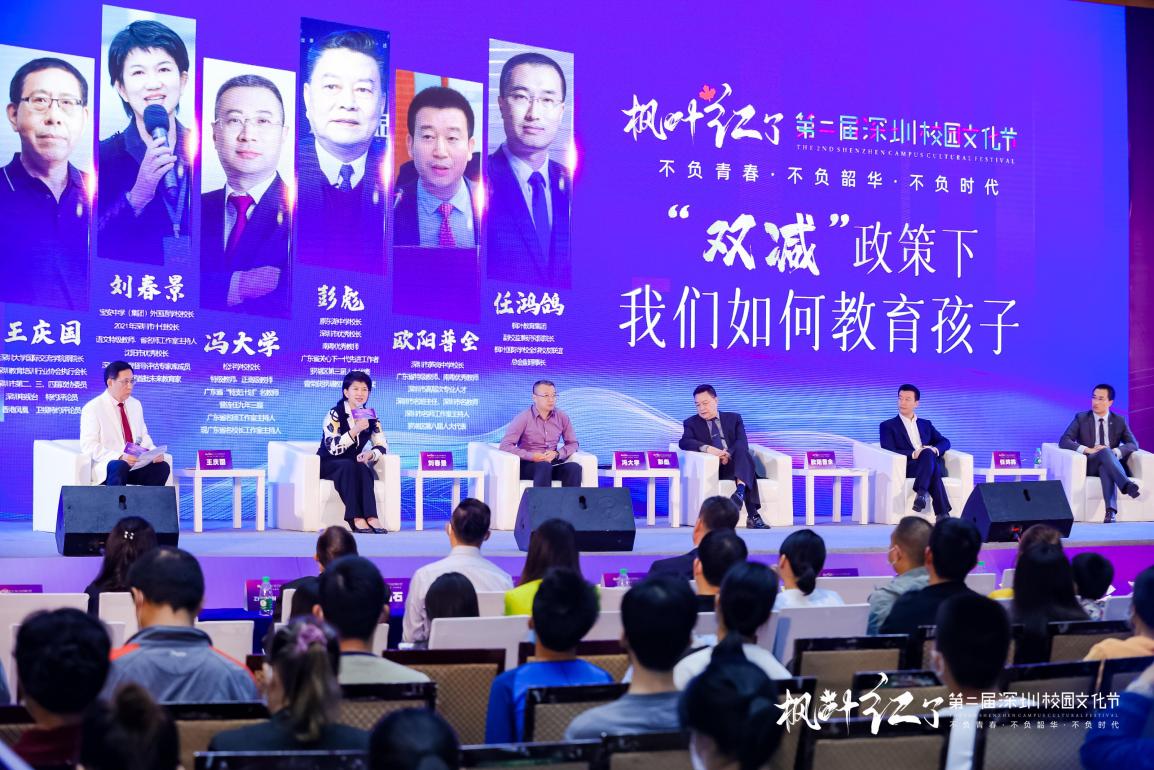 下午,現(xiàn)場(chǎng)舉行“雙減政策,該如何教育我們的孩子”專家論壇,深圳大學(xué)國(guó)際交流學(xué)院原院長(zhǎng)王慶國(guó)、羅湖區(qū)第三屆人大代表彭彪、寶安中學(xué)(集團(tuán))外國(guó)語(yǔ)學(xué)校校長(zhǎng)劉春景、松坪學(xué)校校長(zhǎng)馮大學(xué)、筍崗中學(xué)校長(zhǎng)歐陽(yáng)普全、楓葉教育集團(tuán)副校監(jiān)兼研究院院長(zhǎng)任鴻鴿等六位嘉賓出席本屆論壇。圍繞雙減政策下,如何教育孩子?進(jìn)行深層次的探討,分享各自的觀點(diǎn)與建議,為廣大學(xué)生與家長(zhǎng)解疑答惑。