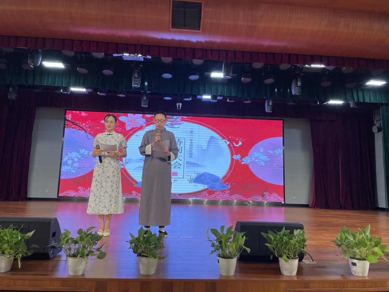 在仙田外國(guó)語(yǔ)學(xué)校星空劇場(chǎng),高年級(jí)組的19名同學(xué)帶來(lái)了一場(chǎng)精彩的詩(shī)歌朗誦盛宴,同學(xué)們或組合吟誦《春江花月夜》、或獨(dú)自吟唱《滿江紅》,時(shí)而高昂,時(shí)而抒情,充分展示了仙田學(xué)子扎實(shí)的古典詩(shī)詞功底。