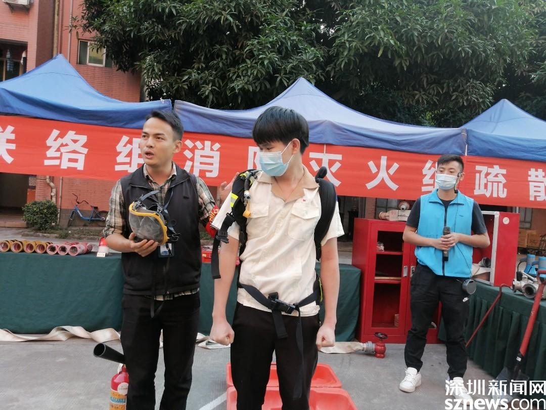 演練情景設(shè)定為工業(yè)園巡查人員發(fā)現(xiàn)火情,立刻上報(bào)并報(bào)警。隨后火警警報(bào)驟響,樓道內(nèi)冒出濃煙,疏散演練正式開始。工業(yè)園職工、居民在各組工作人員的指揮下,用口罩、衣服等捂口鼻,屈膝彎腰沿著既定的疏散路線,迅速向安全區(qū)域撤離。隨后社區(qū)消防員到達(dá)現(xiàn)場(chǎng),用消防高壓水槍進(jìn)行高空滅火,撲滅火災(zāi),解除警報(bào)。演練結(jié)束后,社區(qū)還組織工業(yè)園職工、居民參加安全體驗(yàn)活動(dòng),學(xué)習(xí)消防救援設(shè)備的用法、進(jìn)行消防結(jié)繩和滅火實(shí)操訓(xùn)練。