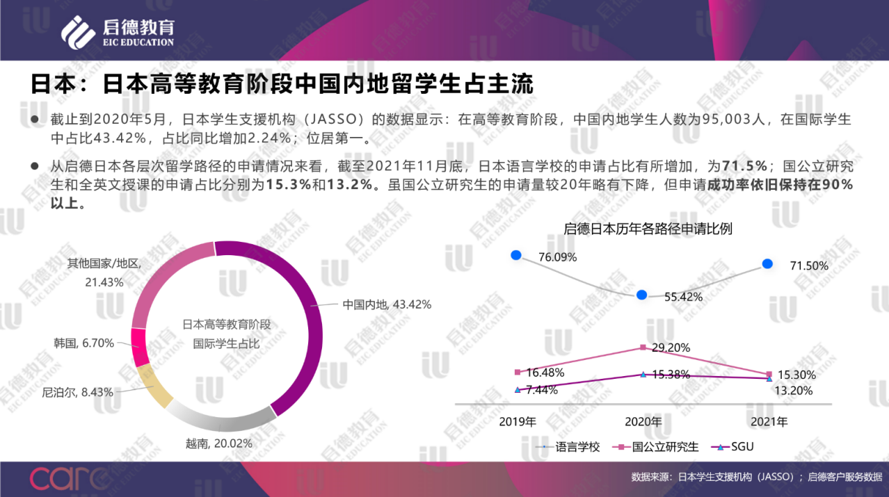 讀特客戶端·深圳新聞網(wǎng)2021年12月19日訊(記者 陳彬)2021年12月18日,啟德教育發(fā)布《中國留學市場2021年盤點與2022年展望 》,以啟德教育自有客戶服務數(shù)據(jù)為基礎,綜合整理美、英、澳、加、亞洲、歐洲等中國學生主要留學目的地的各類官方數(shù)據(jù),梳理出2021年中國留學市場概貌、最新招生政策,以及各主流留學目的地發(fā)生的可能對中國留學生產(chǎn)生影響的大事件,并對2022年中國留學市場的發(fā)展變化進行了展望與預測。