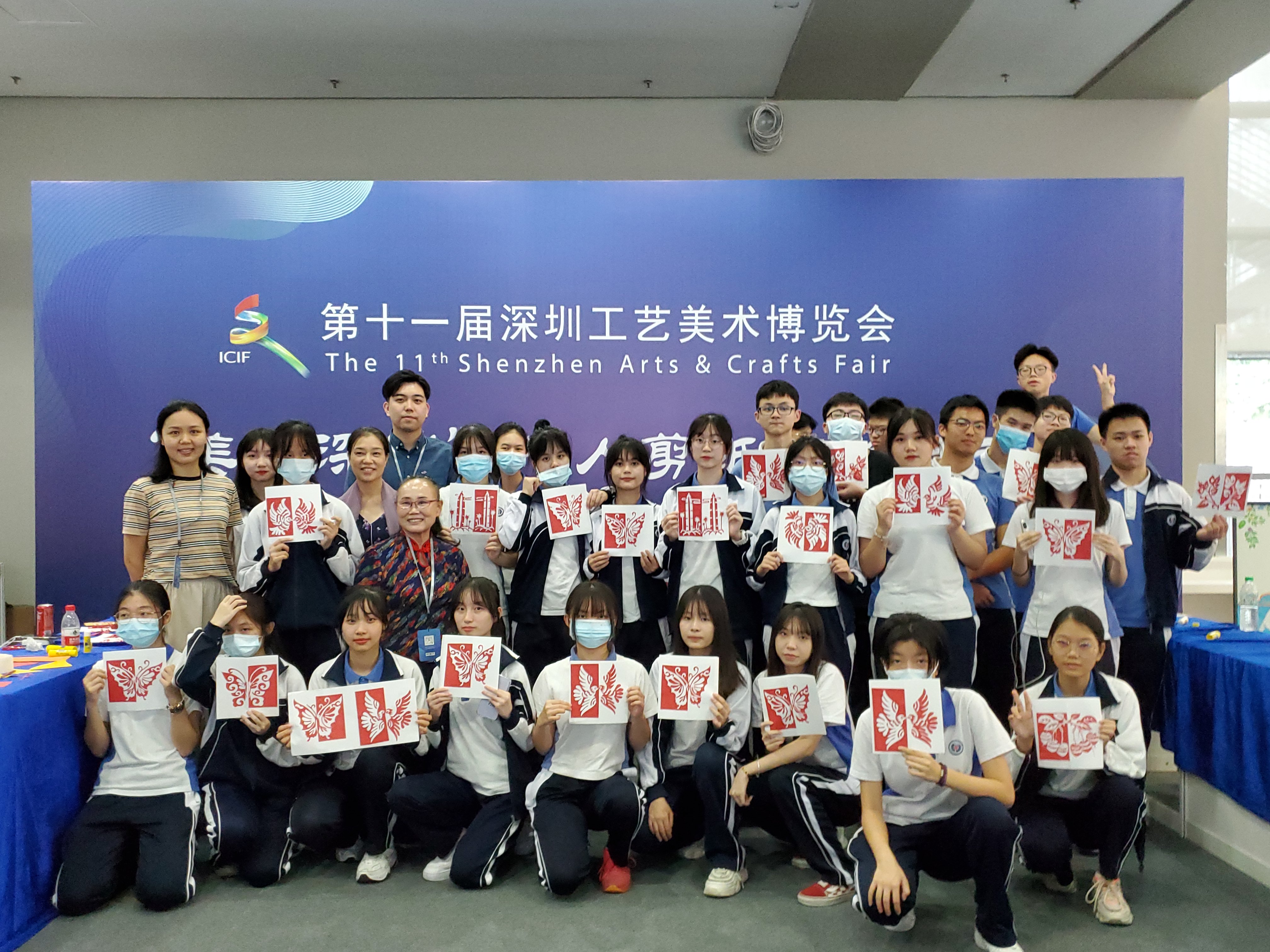 福田區(qū)非物質(zhì)文化遺產(chǎn)“剪紙(袁氏)”代表性傳承人、深圳市剪紙藝術(shù)協(xié)會會長袁曼君老師攜傳承人黃原參加展會,并帶來了“剪紙里的福田”系列作品,以剪紙作品獻(xiàn)禮深圳經(jīng)濟(jì)特區(qū)建立40周年。