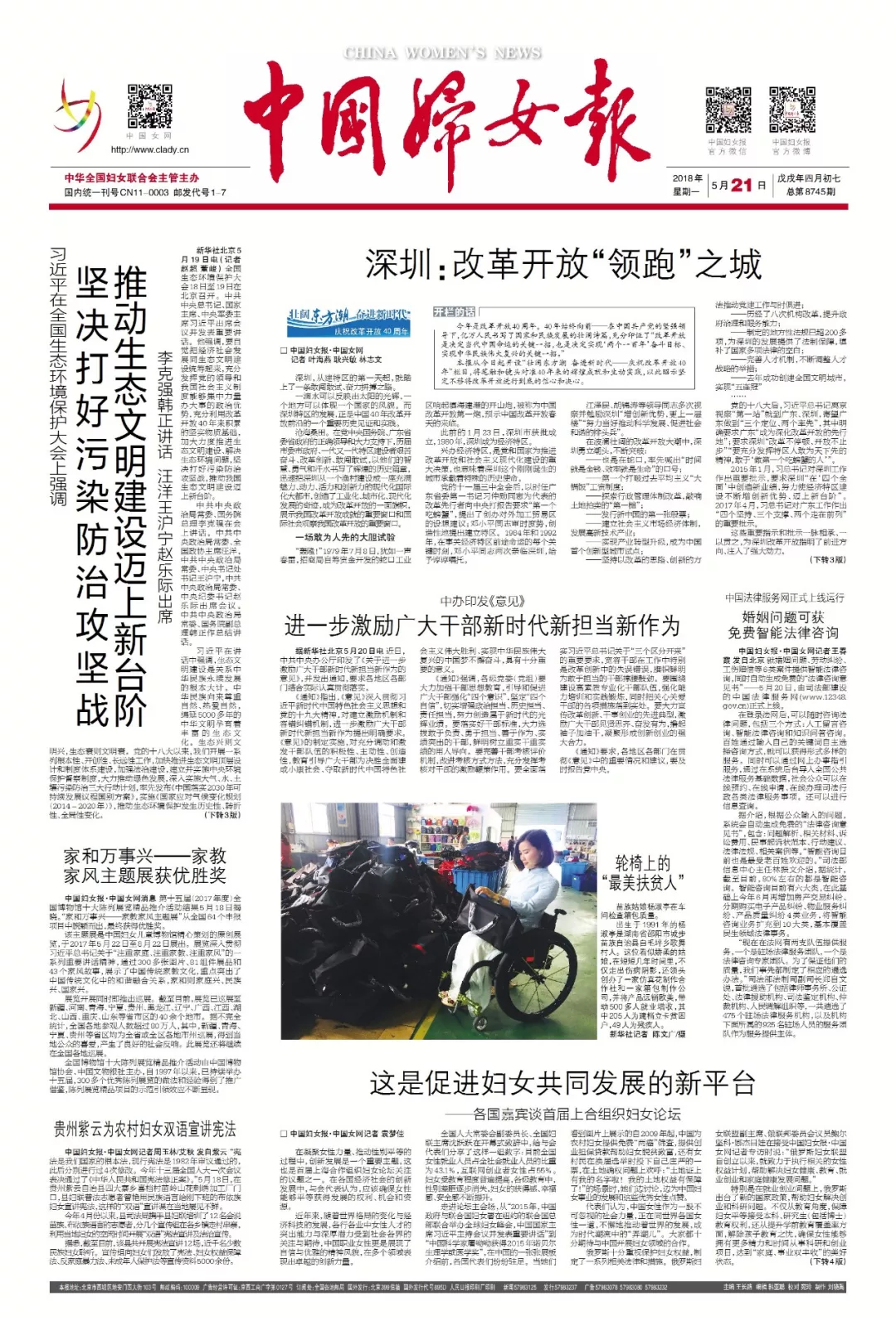 這是《中國(guó)婦女報(bào)》2018年5月21日一版版面。