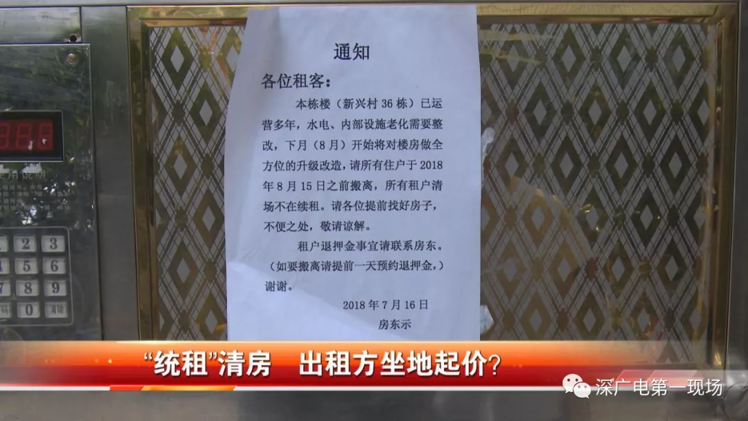 在趙先生家附近,記者找到了這個名為新興村的城中村,在其中一棟樓房的入口處貼著一張告示,上面寫道,由于房屋水電設(shè)施老化,所以需要整改,8月15日之前所有住戶都得搬離,所有租戶都不再續(xù)租,落款寫的是房東。