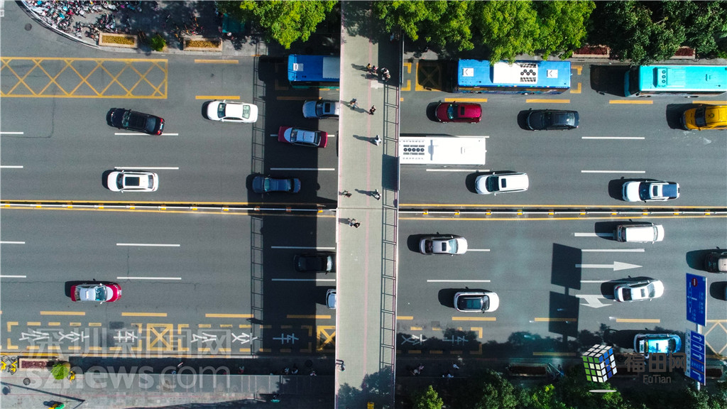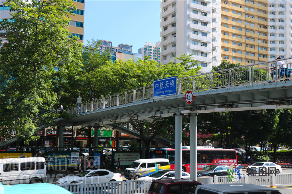 中航天橋位于深南大道上,是華強北過了中心公園后唯一一個比較標志性的構(gòu)筑物