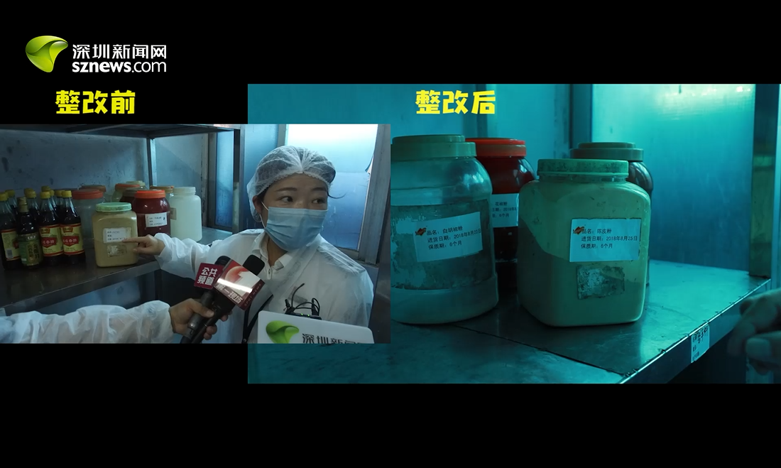 29日突查發(fā)現(xiàn),該公司留樣柜“留樣食品有漏汁”。今日深圳新聞網(wǎng)回訪發(fā)現(xiàn),該問(wèn)題已得到整改,留樣食品已用保鮮膜密封。